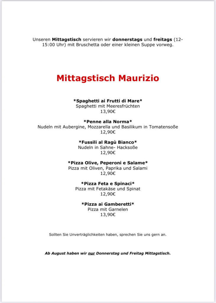 Wir bieten Ihnen wechselnden italienischen Mittagstisch.
